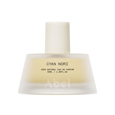 Cyan Nori Eau de Parfum by Abel is a salty-sweet aquatic fragrance. A burst of briny nori opens this outspoken directional scent, as effervescent white peach and tangerine float the transition to a vibrant skin musk dry-down.