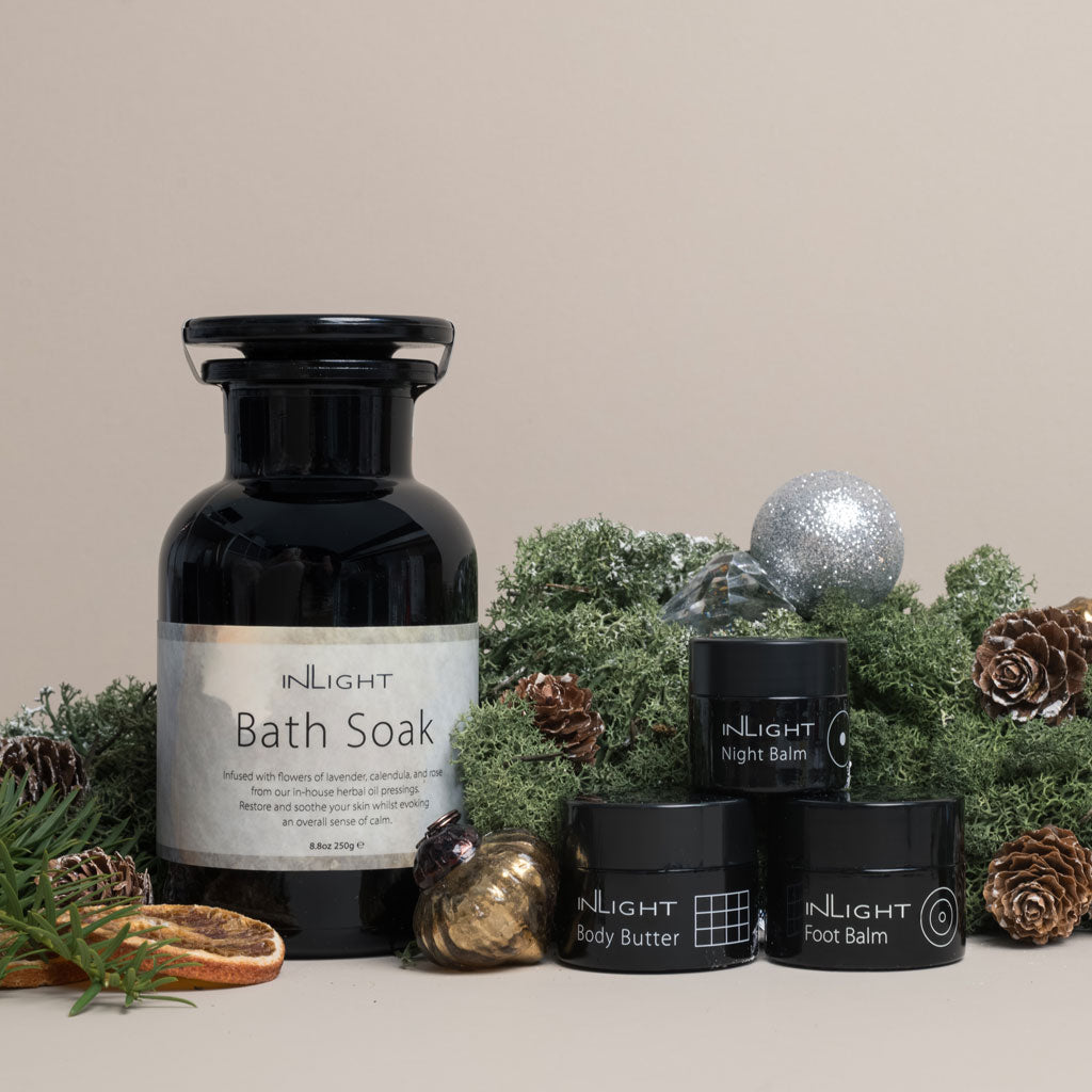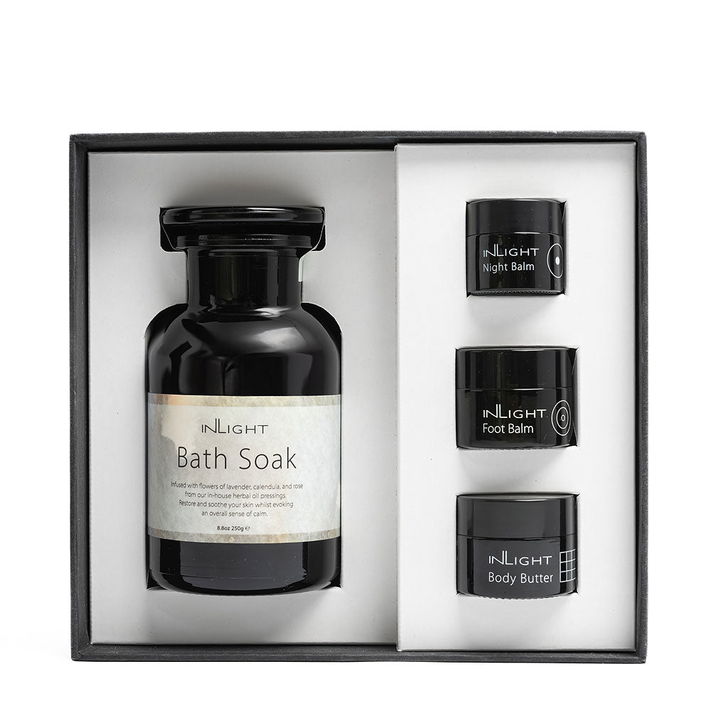 Bath Soak: Sodium Chloride (Himalayan Salt), Lavandula Angustifolia (Lavender) Flower*, Calendula Officinalis (Calendula) Flower*, Rosa Damascena (Rose) Flower*, Simmondsia Chinensis (Jojoba) Seed Oil*, Citrus Aurantium Dulcis (Orange) Peel Oil*, Lavandula Angustifolia (Lavender) Flower Oil*, Anthemis Nobilis (Roman Chamomile) Flower Oil, Cananga Odorata (Ylang Ylang) Flower Oil Limonene**, Linalool**