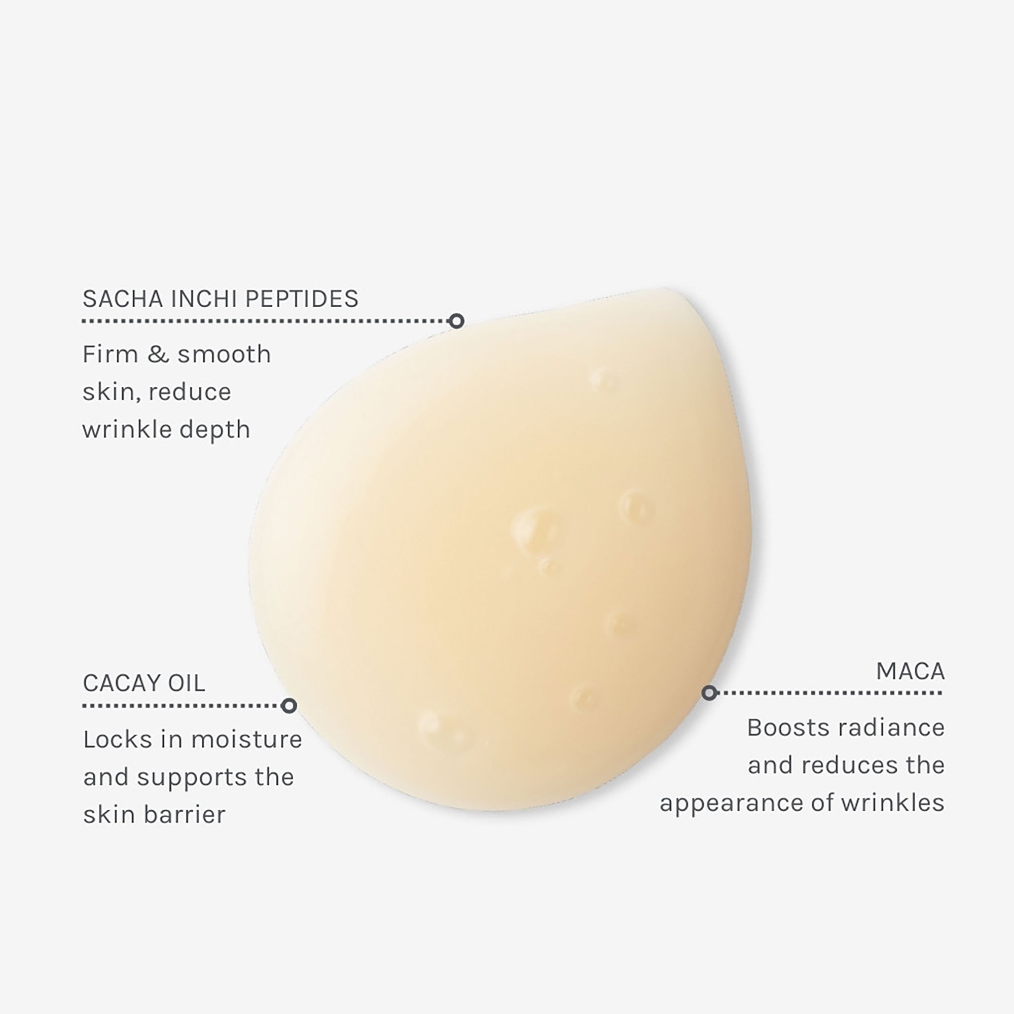 • Sacha Inchi Peptides - natural peptides are clinically proven to improve facial firmness, reduce wrinkle volume and smooth the skin, restructuring by improving dermal density.