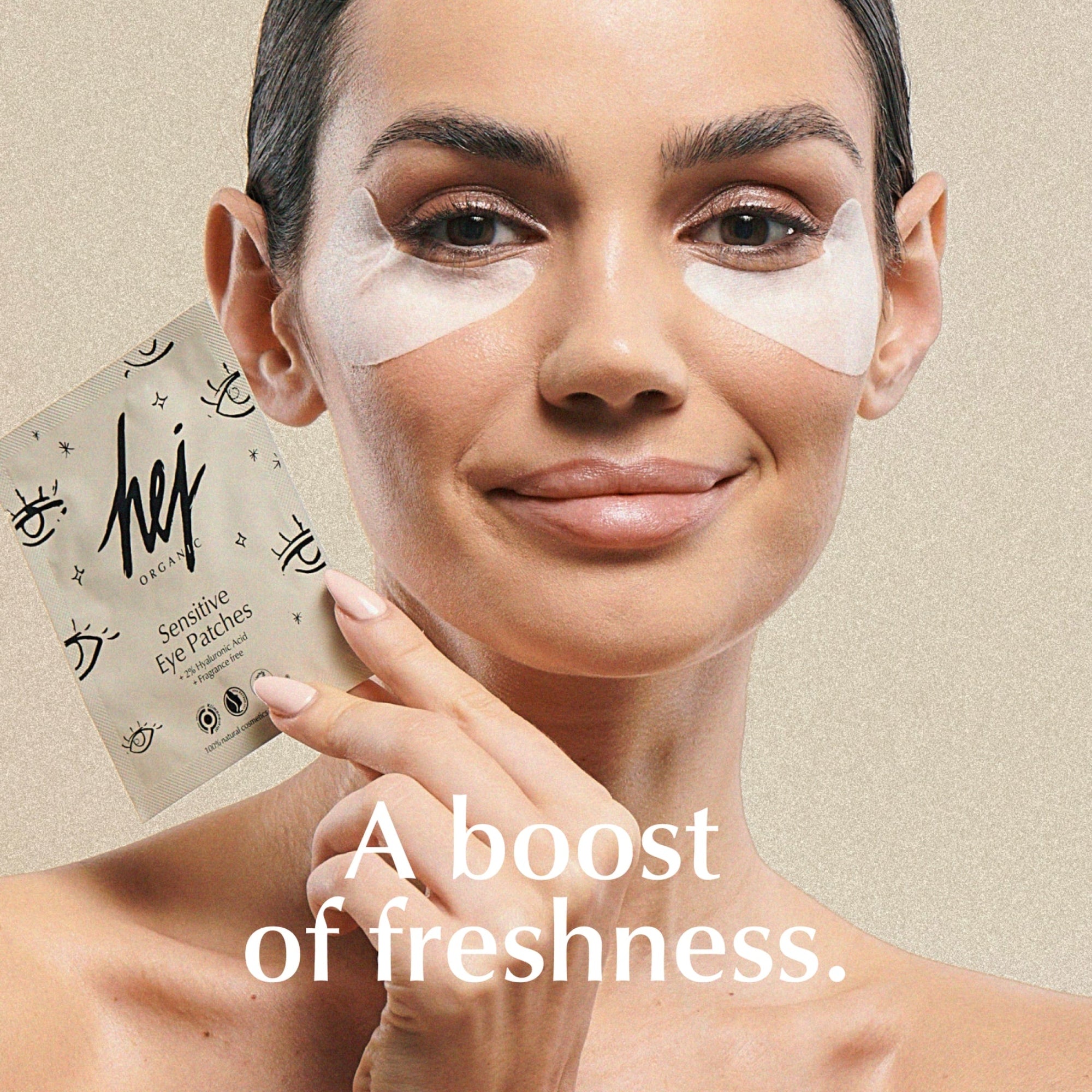 The Hej Sensitive Eye Patches deliver a targeted hit of soothing, hydrating, and regenerating actives exactly where you need them most.
