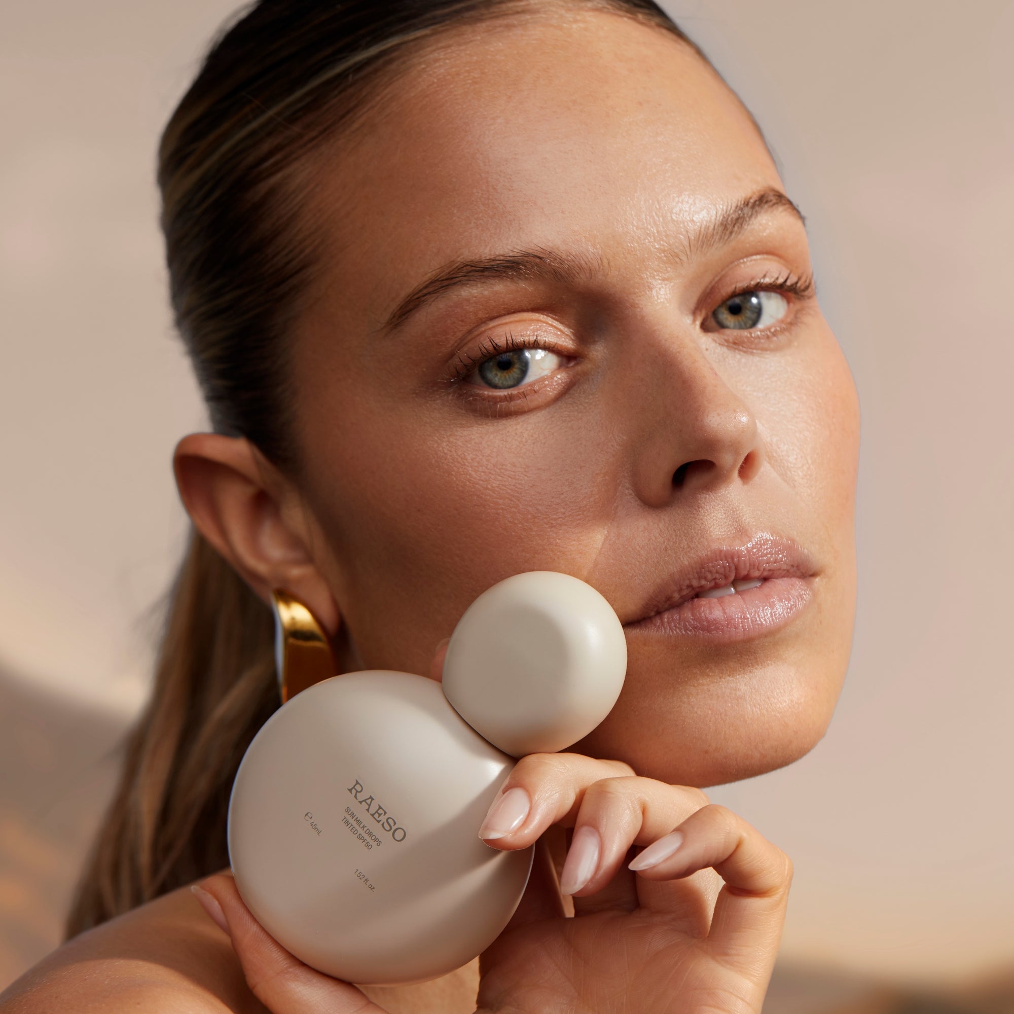 The Raeso Sun Milk Drops SPF50 is a lightweight mineral sunscreen that defends against UVA, UVB, pollution, blue light, and infrared rays - while also smoothing, brightening, and prepping skin for makeup. The peach-tinted formula blends seamlessly into all skin tones, leaving behind a radiant, breathable glow without clogging pores.
