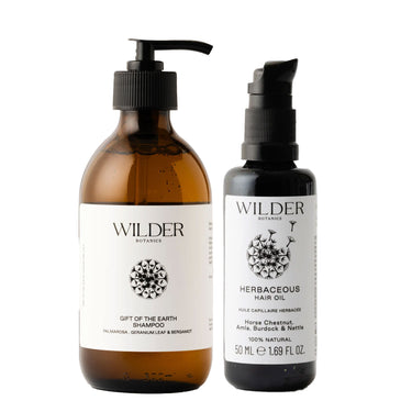 Elevate your daily hair ritual with this holistic pair — the Gift of the Earth Shampoo and Herbaceous Hair Oil from Wilder Botanics.